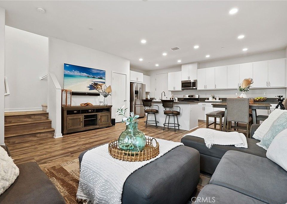 A true Masterpiece of Design and Comfort, this 3 Bedroom, 2.5 Bath Turnkey Residence features charming upgrades in every direction you look! Upon entry the Upgrades and Functionality are immediately revealed within the Great Room featuring Gorgeous Luxury Laminate Flooring and Plantation Shutters. Beautifully crafted, the Open Chef’s Kitchen has been upgraded throughout with Stainless Steel Appliances, Quartz Counter Tops, White Cabinets, Walk-in Pantry and Massive Quartz Center Island. Upstairs you will find the convenient upstairs Laundry, Two Full Bathrooms and Three Spacious Bedrooms. Open, Light and Bright the Spacious Primary Retreat and Spa Like Primary Bathroom features a Restorative Walk in Shower, Upgraded Tile and Large Walk-In closet creating an at home sanctuary every buyer will love! Additional Features include a Spacious Two Car Garage and Tankless Water Heater...Baker Ranch offers Amazing Resort-Style Amenities including 3 swimming pools, 8 parks, hiking and biking trails, numerous sports courts, dog park, clubhouse, etc..No Mello Roos and Low HOA… This one is special...Do not wait to see it!