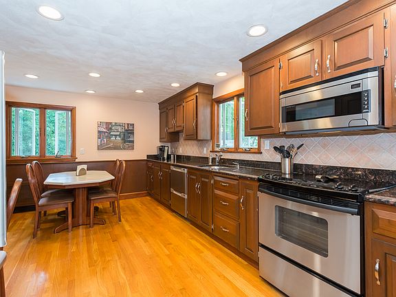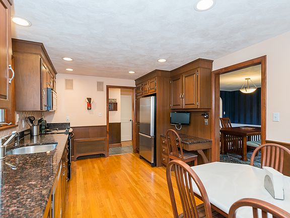 Custom built brick front home on a quiet street, move-in condition located in Bear Hill neighborhood, close to Rtes. 95/93, minutes to Boston. The main level offers hardwood floors, eat-n kit w/ solid cherry cabinets, SS appliances and granite tops. Archways connect the foyer to DR, front to back LR with fireplace and crown molding. Master suite has full bath and 4 closets. 1st floor also incl. 2 add'l bedrooms with jack-n-jill bath, large sunroom, powder room and lots of built-ins. 2nd floor features 4th BR, office space with hardwood floors, a full bath, fireplace, dressing area, and a walk-in attic with cedar closet. Space could be used as Great Room, in-law suite, Master Suite, or home office. LL FR with wet bar, 1/2 bath, home theater, Bose sound system with built-in speakers throughout, billiard area, fitness area, 3rd fireplace, with extensive storage and laundry. Other features: newer windows and roof, security system, sprinkler on separate meter, 2 car garage, walk to town fields. Buyer broker compensation 2.2%