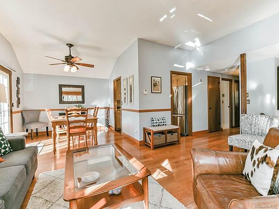 Warm, inviting and sun drenched home nestled in the heart of Canton near Roaring Brook Nature Center and some of CT's best hiking trails. This beauty features a spacious open concept between the living room and dining room. The living room boasts custom built in cabinetry, a cozy wood burning fireplace and gorgeous hardwood floors that lead into the dining room. The dining room has easy slider access to the outdoor living space on the large deck overlooking the lush yard and firepit. Most of the stainless appliances are new within the last few years! The first floor features hardwood flooring throughout and the lower level has been remodeled with durable laminate flooring as well. In the lower level you will find an additional bedroom and full bath along with the laundry and family room. The family room has easy access to the wonderful yard and features a 2nd wood burning fireplace. It comes complete with a 1 car attached garage, radiant heat, newer replacement windows, a new water heater in 2016 and new roof in 2020! What more could you want? Minutes to Ski Sundown, The Canton Shoppes, local wineries, breweries, golf courses and farms, this home is in the perfect location yet feels tucked away. This one won't last long, set up your showings before you miss your chance!