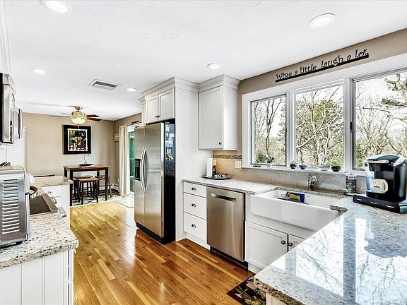 Welcome to this spacious and inviting 4 bedroom (septic says 3)ranch nestled conveniently close to the village and Heritage Gardens and Museum. With 2.5 updated baths, this home offers both comfort and style. Entertain guests in the formal dining room and gather around the fireplace in living room. The updated open kitchen, complete with a sitting area and fireplace, is perfect for culinary delights and cozy gatherings. Enjoy outdoor living on the large deck accessible from both the kitchen and the primary bedroom suite. Additional features include a 2-car garage and a walkout basement. Don't miss out on this opportunity to own a charming home in a sought-after location