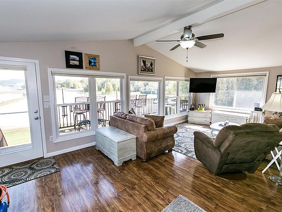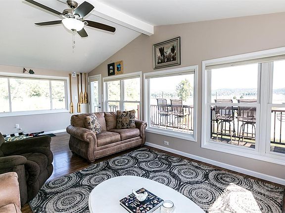 Welcome to River life. This adorable home with spectacular views of downtown Grafton & the Great River Rd Bluffs is situated on a large level lot (Army Corp Lease) with patio, firepit and has plenty of parking for large family gatherings. This is a rare opportunity to own one of the highly sought-after clubhouses on Airport Lake & The Mississippi River. This light filled raised home has an open floor plan with walls of windows. With your living, dining, kitchen combination its perfect for family get-togethers. Kitchen has custom cabinetry, granite countertops and stainless steel appliances. 2 Bedrooms & full bathroom with tub and shower complete the package. Large deck perfect for lazy afternoons, patio and tuck under for parking/storage. Jump on the Grafton Ferry or scoot over by boat to Grafton for eats/drinks/music/entertainment.