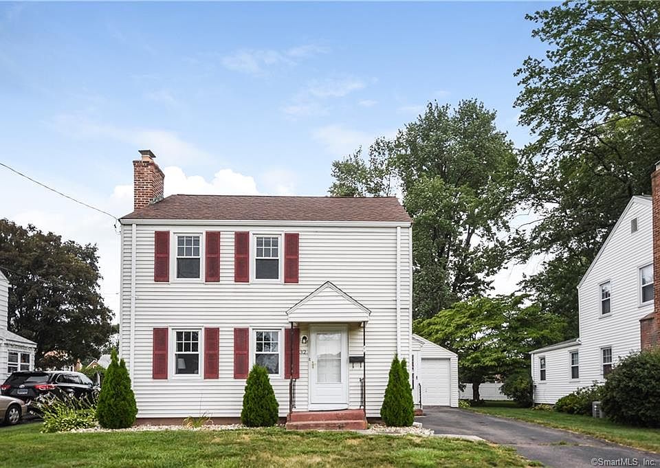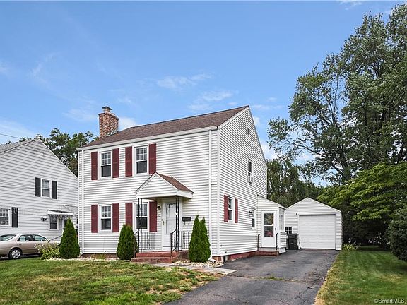This beautiful 1376 ft.² Colonial offers 6 rooms, 2 Bedrooms, and 1.5 Baths, located on .17 acres near I-84 and 2 miles from Blue Back and W.H. Center! The light and bright 20'x11' Living Room has HW floors, crown moldings and wood-burning Fireplace with architectural mantle! The all-white Kitchen has a Gas Cooktop/Range and access to the enclosed Side Porch. The 12'x12' Dining Room with HW floors, crown moldings, and chair rail, opens into the sun-filled, 15'x14' Family Room with W/W carpeting, large windows, and half bath! The entire 2nd floor offers HW floors and includes the 16' x 12' Master with dual closets and crown moldings, the 13' x 11' 2nd Bedroom, 2-hallway closet's and Full Bath. Enjoy the level backyard, including the 21'x16' patio, there's room for all your family and friends out here! This home also offers a 1-car detached garage, Public Utilities, Natural Gas H2O Heater makes converting from Oil much easier, and with Forced Air heat, the duct work is already in place to add Central A/C! The full basement houses the washer/dryer, tub sink, and offers great storage! Charter Oak School across the street allows for safe and quick access to the School, Playground, and Open Space! This well cared for home includes renovations such as: New Basement Windows & Lighting (2018), Interior Painting (2018 & 2017), Family Room Remodel (2016), and New Windows (2011)! This great home is just a quick walk or a short drive to everything West Hartford has to offer!