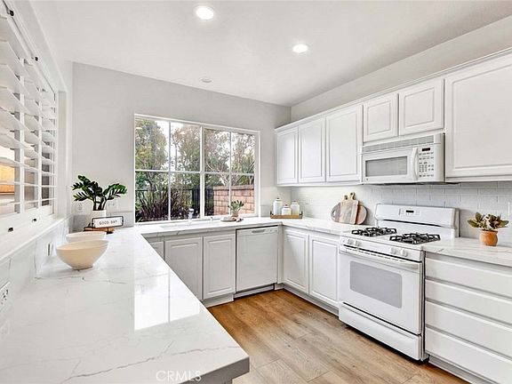 Welcome to 32 Sienna Ridge, a Spectacular Two Level, End Unit View Home Overlooking the Upper Oso Reservoir in the Sought-After Painted Trails Community in Mission Viejo. This Dream Home Showcases Three Bedrooms, Two and a Half Bathrooms, New LVP, New Carpet, New Interior Paint, New LED Recessed Lighting Downstairs, and Numerous Upgrades Throughout. The Gourmet Kitchen Enjoys a Reservoir View, Boasts Quartz Counters, Subway Tile Backsplash, Bar Counter Seating, Ample Pantry Storage, Access to The Dining Area, and Opens to the Family Room, Which is Perfect for Entertaining. The Spacious Family Room Has a Cozy Fireplace, Built-In Cabinetry, Overlooks the Reservoir, and Provides Direct Access To the Backyard. The Private Upstairs Primary Suite Enjoys a View of the Reservoir and a Spacious En-Suite Bathroom Showcasing Dual Vanities, a Large Walk-In Closet, and a Secondary Mirrored Closet. The Two Secondary Bedrooms Complete The Upper Level. The Low Maintenance Backyard Enjoys Patio Seating, Turf and Overlooks the Reservoir. The Laundry Room Features Built-In Cabinets and Direct Access to the Two-Car Garage, Including A Rare Two-Car Driveway. HOA Amenities Include a Community Pool, Jacuzzi, Sports Court, BBQ Area, Picnic View Point, Greenbelts, Parks, Rose Garden, Access to Hiking Trails Along the Oso Reservoir, Plus Access to Lake Mission Viejo, Which Offers Swimming, Boating, Fishing, Concerts, Movie Nights, and Many More Amenities. Don’t Miss The Opportunity to See 32 Sienna Ridge!
