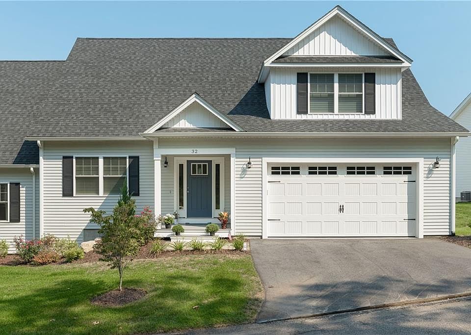 This 2021 built light-filled end unit boasts a spacious open floor plan set up for the ease of living on one level yet offers extra living space on the second level, and a full basement with daylight windows that can easily be finished off if expansion is needed. Gently used with so many amenities including ceiling height kitchen cabinets with rollout drawers, quartz counters with a tile backsplash, a walk-in pantry, farmer’s sink, high-end appliances, wine refrigerator, custom window treatments, hardwood floors in master, see-through shower door in master bath with double sinks, upgraded carpets in second level bedroom suite and bonus room, and extra outlets with plenty of storage on the lower level. A gas fireplace for ambiance and sliders off the dining area to a large deck add to the bells and whistles along with a finished 2-car garage. Fabulous setting overlooking the privacy of woods across the street and a sprawling yard in the rear. Convenient location close to beaches, URI, Amtrak, and the commuter rail. Seller is in the process of building with an expected occupancy in approximately 60 days. If a quick closing is required, this seller is willing to lease back!