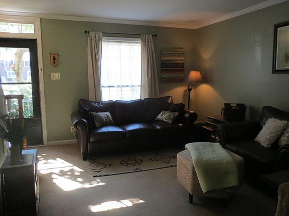 Georgetown! Sought after Smithfield Court is great location for this charming, updated unit! Crown molding in living room, replaced slider in dining area to private, wooded backyard. Kitchen window and storm door have been replaced. Updated bathrooms and kitchen have ceramic tile floors. The classic brick wall in kitchen eating area, stainless refrigerator, and wonderful kitchen faucet. There is a small closet in the living room! Hardwood floors on stair treads, upstairs hallway and bedroom. Condo fee includes heat, hot water, and gas for cooking. Complex has 2 inground pools, tennis courts, and a rentable clubhouse. One pet under 30 lbs. is allowed with association approval. OPEN HOUSE SUNDAY, 18th!
