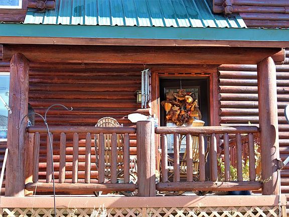 Log home on a cul de sac, floor to ceiling windows of the mountains to the east. No need to hang pictures this has beautiful views ever changing with the seasons. Dining nook off kitchen and formal dining. Mud room off garage. Pantry storage. Cozy fireplace in livingroom and hardwood floors. Master on the main with sitting room or office, walk in closet and large bath. Curved stairway to catwalk with 2 spacious bedrooms and full bath up. Home has many decorative touches including stain glass panels, branch handrail and most impressive is the copper ceiling in the kitchen. Home has been remodeled in 2013 including cabinetry, farm sink, duel fuel range, rock island bar and soapstone counters. Walk in through the entry and your looking right up the canyons. New H20 softener.Vaulted ceilings