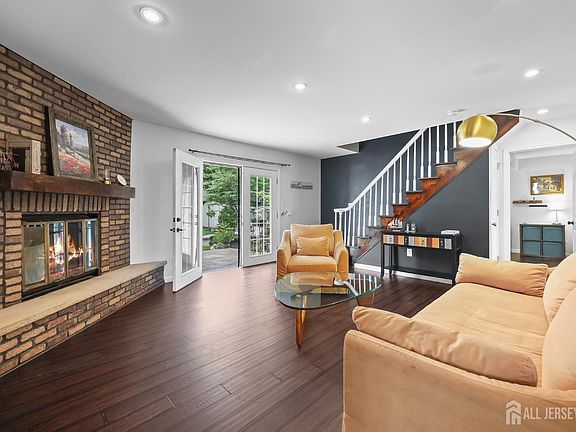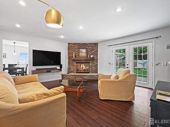 Welcome to this impeccably updated and beautifully maintained 3-4 bedroom Cape Cod-style home, ideally located in the desirable heart of Old Bridge Township. From the moment you arrive, the pride of ownership is unmistakable, with thoughtful upgrades and modern touches throughout every inch of the home. Step inside to discover a designer-inspired chef's kitchen that is sure to impress, featuring elegant custom white cabinetry, luxurious quartz countertops, a gleaming subway tile backsplash, a stainless-steel appliance suite including a stove hood, and generous prep space perfect for entertaining or casual dining. Just off the kitchen is a versatile bonus room ideal for a home office, den, or additional living space, which seamlessly flows to a beautifully landscaped backyard with a spacious patio perfect for summer gatherings and outdoor relaxation. The entire home is outfitted with wide-plank, dark-stained engineered bamboo flooring, adding warmth and contemporary style throughout. The living room invites you in with a charming wood-burning fireplace framed by a classic brick surround, creating the perfect setting for chilly evenings. The primary bedroom is conveniently located on the first level and includes a thoughtfully converted adjacent second bedroom that now serves as an expansive custom walk-in closet. The spa-like full bathroom on the main level has been completely remodeled and features an oversized glass-enclosed shower with timeless subway tile, a sleek frameless door, and a bespoke vanity that exudes sophistication. Upstairs, you'll find two spacious and sunlit bedrooms boasting dramatic cathedral ceilings and access to a stylish half bath, ideal for guests or additional family members. This exceptional home is situated in a prime location just minutes from NYC transportation, top-rated restaurants, shopping destinations, parks, and schools, making it a perfect blend of modern luxury and everyday convenience. Don't miss this rare opportunity to own a move-in-ready home in one of Old Bridge's most sought-after neighborhoods.
