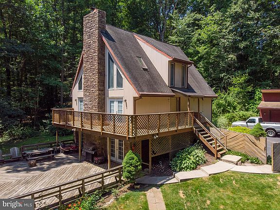 Welcome to 32 Speck Rd, a custom built A-frame home on a secluded 1.49 acre lot in Brecknock township. You'll immediately notice the oversized 3 car garage with additional parking great for storage or your hobbies. Inside the home you'll immediately be drawn to the two story living room with tons of natural light and a beautiful fireplace that brings the room together. Off of the living room is a galley style kitchen and a separate dining area. This floor also features the primary bedroom and full bathroom. The second level of the home overlooks the living room and has two private bedrooms and another full bathroom. The lower level of this home has been finished and has another full bathroom, a room that was previously used as a bedroom, and a family room with a wood burning stove that heats the home in the winter to reduce electric bills. The outdoors of this home is great for relaxing or entertaining. The home features a huge wrap around deck, another large deck with access to the lower level, and a fully fenced inground pool. Don’t miss out, schedule your showing today!