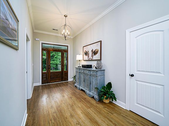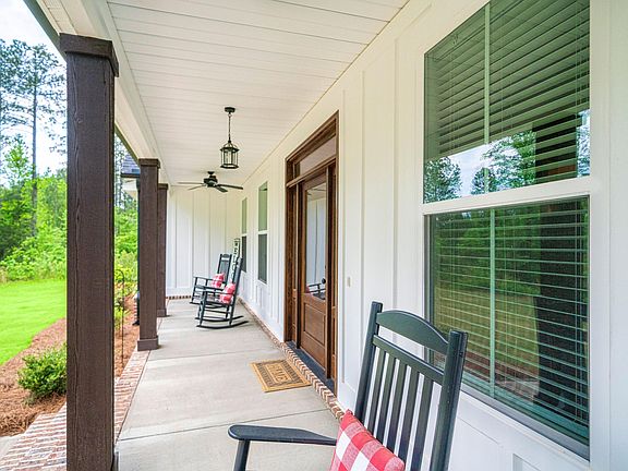 #FarmHouseStyle This home exudes timeless elegance. The inviting rocking chair front porch welcomes you to come relax and enjoy the nature. Step into the spacious foyer, where luxury plank vinyl flooring sets the tone. There is an dedicated office space for work or creativity. The great room is the perfect space to cozy up by the fireplace with its brick surround and shiplap accent. The built-in bookshelves add character. The kitchen which is the heart of the home features a large island, ample cabinet space, & stylish subway tile backsplash. Stainless steel appliances, including a gas stove and a farmhouse sink that will make cooking a pleasure. The master suite has tray ceilings and crown molding that elevates the room. The master bathroom boasts with a custom tiled walk in shower, large tub, & two sinks. In the laundry room practicality meets style with a folding area. The mud area will help keep things organized. Enjoy fresh air in your spacious backyard, where you can host gatherings, play, or simply unwind. The covered porch provides shade, while the uncovered patio is deal for soaking up the sun. Do not miss out on the exceptional home!