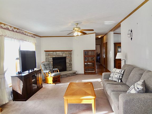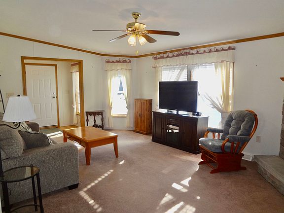 Truly a special home with tons of natural light an lovely details throughout. The focal point of the living rm. is the nicely done gas fireplace which opens to your formal dining area. The spectacular kitchen is truly the "Heart of the Home". Once you see all the cupboards and counter space with a beautiful bright eating area, you'll know this will be a favorite place to gather. Spacious primary suite w/ large walk-in shower, double sinks and a soaking tub. You will also find a good size walk-in closet as well. Sizeable 2nd bedroom is perfect for visiting guests. You'll love the sweet front porch, perfect place for your morning coffee. You will also enjoy the side deck for grilling. Good size shed for your outdoor tools. NEW FURNACE & HOT WATER TANK. This affordable 2006 double wide has a low monthly fee of $430., which includes your water, sewer & trash. Fantastic location to points North & South. Shopping, skiing, hiking, and boating is only minutes away. Cat's only please.
