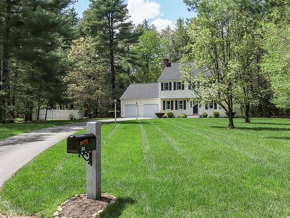 Offer deadline Tuesday May 20th by 5pm. Beautifully updated Colonial nestled on a quiet cul-de-sac in the coveted Crosswinds neighborhood. Set on a lovely 1-acre lot abutting conservation land, the home offers a spacious backyard & peaceful natural views. The open floor plan features a stylish eat-in kitchen with center island, marble countertops, tile backsplash, and stainless appliances. Enjoy serene backyard views from the dining area. A fireplaced living room, family room, half bath, and laundry complete the main level. Upstairs, the spacious primary suite boasts a luxuriously updated bath with soaking tub and tiled shower. Two additional bedrooms and a full bath complete the second floor. The newly finished lower-level rec room offers added versatility. Easy access to rail trail & P. Bertozzi trail system leading to scenic Squannacook River. Less than 5 minutes to Harbor Village Plaza with shopping, dining, gym, & more. Newer roof, full list of improvements available upon request.