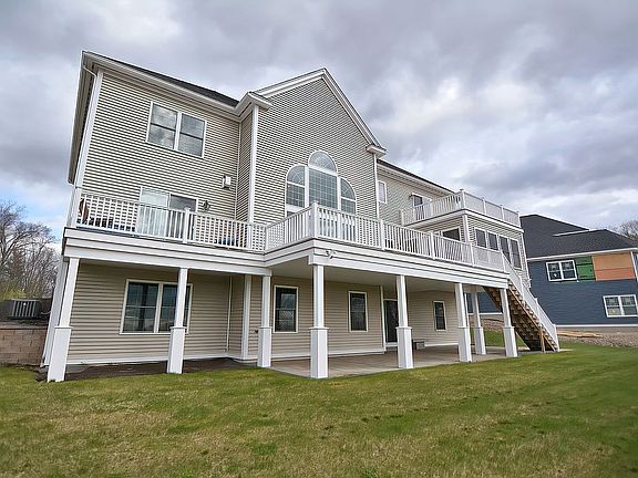 Enjoy the sunsets living at the summit of Spicket Hill, offering captivating views of Mt. Monadnock and Merrimack Valley! With over 1.18 million in verifiable construction costs, this custom 2019 built hilltop retreat is in commuting range to Boston via 93. An additional 230k has been invested beyond builder’s base price, adding 2 levels of balcony, finished additional bedroom, and oak hardwood flooring running throughout the 1st and 2nd floors. A state-of-the-art eat-in chef’s kitchen offers a large center island, granite counters and pantry, opening up to a sunroom with heated flooring, and 2 story great room with stone fireplace, custom shelving, and powered Hunter Douglass blinds. Enjoy hosting dinners in the adjacent dining room, with extra kitchenette, fridge and wine rack connecting kitchen and dining rooms. New high end large LG machines have been recently added to the laundry room, with adjacent mudroom and garage offering easy access to the home and kitchen. Choose between two equally sized master suites with large private bathrooms: the 2nd floor master has its own large balcony offering beautiful views. The upper floor showcases the openness of the home overlooking the great room, offering 4 total bedrooms, 2 full baths, large private office, and luxurious walk-in cedar closet. A finished walk-out lower level of the house complete with full wet-bar, rec room, full bath, and state of the art finished gym opens to a huge covered patio. An additional 600 Square feet of unfinished space in the basement can be used for storage or finished at a later time, in addition to attic space upstairs. Landscaping is currently being completed.