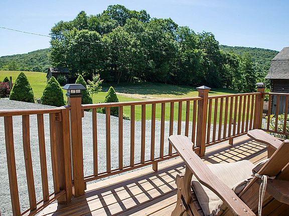Picture book farmhouse on a quiet country lane, surrounded by meadows and views.1916 original with maintained woodwork and trim that have the craftsman details. Larger than it appears, expansive galley kitchen formal dining area, cozy breakfast nook and media/office room. Also on the first floor is the living room,family room,separated by original wood pocket doors.utility room,full bath and foyer/mud room.Four bedrooms, three of them LARGE and a full bath upstairs. Rocking chair front porch with the babbling brook and birds serenading you.Large deck and side porch with stunning views.Seating area with firepit for entertaining or stargazing.Two garages, one three car with electric and workshop. One original garage in great shape, the second story was used for guests back in the day.Outback there is the barn with loft,large two story which has potential to be almost anything you can dream of-studio,guest quarters,woodshop,one story building for tools and toys,woodshed. Perennial beds.