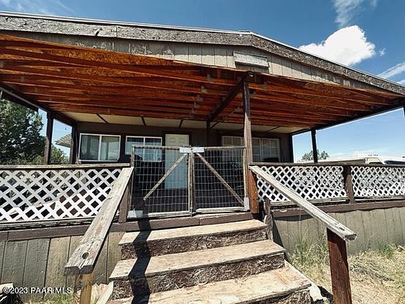 Great bones for a beginning homestead. Two bedroom manufactured home with add-ons to expand your living spaces including a large additional room, a large covered front porch and a screened-in side porch. Elevated water cistern. Solar shed (batteries need replacing). Two large additional sheds. There is also a motorhome on the property which could be used as guest quarters. Twenty acres with mature junipers and pinons, and meadowland. Pretty views. No HOA. Needs carpet, paint and some elbow grease -- would make a great starter home.
