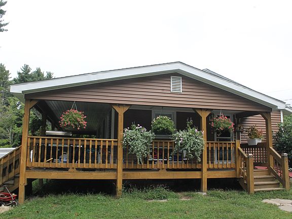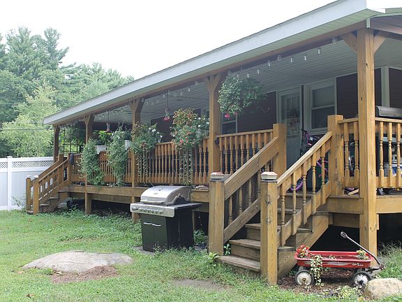 Vacation at home! This cute ranch sits on State Line Pond and offers serious relaxation on the HUGE wrap around covered porch. Water and wildlife views to watch and enjoy. Homeowners have seen bald eagles and beautiful sunsets off of this awesome space that includes electricity and recessed lighting. Come inside to the flexible floor plan. The house is currently set up as a 3 bedroom, but can easily be converted to a 2 bedroom with a formal dining area. The bi-fold doors in the kitchen can be opened to the bedroom/dining area behind it, increasing your dining and living space if needed. Bedrooms are good sized and bathroom has been recently remodeled. Hardwood floors throughout, and under carpeting. All appliances are less than three years old and custom blinds that are both room darkening and insulated are also included. Roof and porch were added in 2016. New wood/coal burning furnace in basement and can be attached at buyers expense or buyer can sell. Being included as is. Wired for generator, and has central air too. Beautiful garden areas and fencing complete this vacation at home setting. Waterfront living at such an affordable price. Won't last long