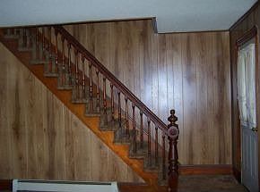 Large rooms & beautiful woodwork make this house worth seeing. Vinyl siding w/ a slate roof make outside maintenance very easy. Hardwood floors under the carpet in most rooms downstqirs & pine floors under carpet up. Good sized master bedroom w/ one half bath & walk-in closet. 2 additional bedrooms & a 11x12 central sitting areaup. First floor bedroom or den. Kitchen w/ pantry. Formal dining room & large living room. Beautiful front porch & covered back porch. Nice lawn w/ detached on-car garage.