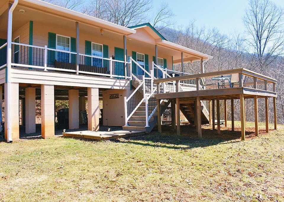 Enjoy one-level living and a beautiful view of the mountains in this 3 bedroom, 2 bathroom custom built home. Open floor plan and large decks offer a great space for guests to be entertained. House is raised on posts to provide the ultimate view for you or guests, as well as allowing space beneath for storage or relaxation. The home is move-in-ready and has ample storage space, easy parking, and a great lot to enjoy. With its pleasant location and lightly wooded perimeter, the home offers both privacy and great scenery. Conveniently located only about 8 miles from Historic Downtown Sylva and approximately 11 miles from Western Carolina University. Home is just over half a mile from turning off of Hwy 441.