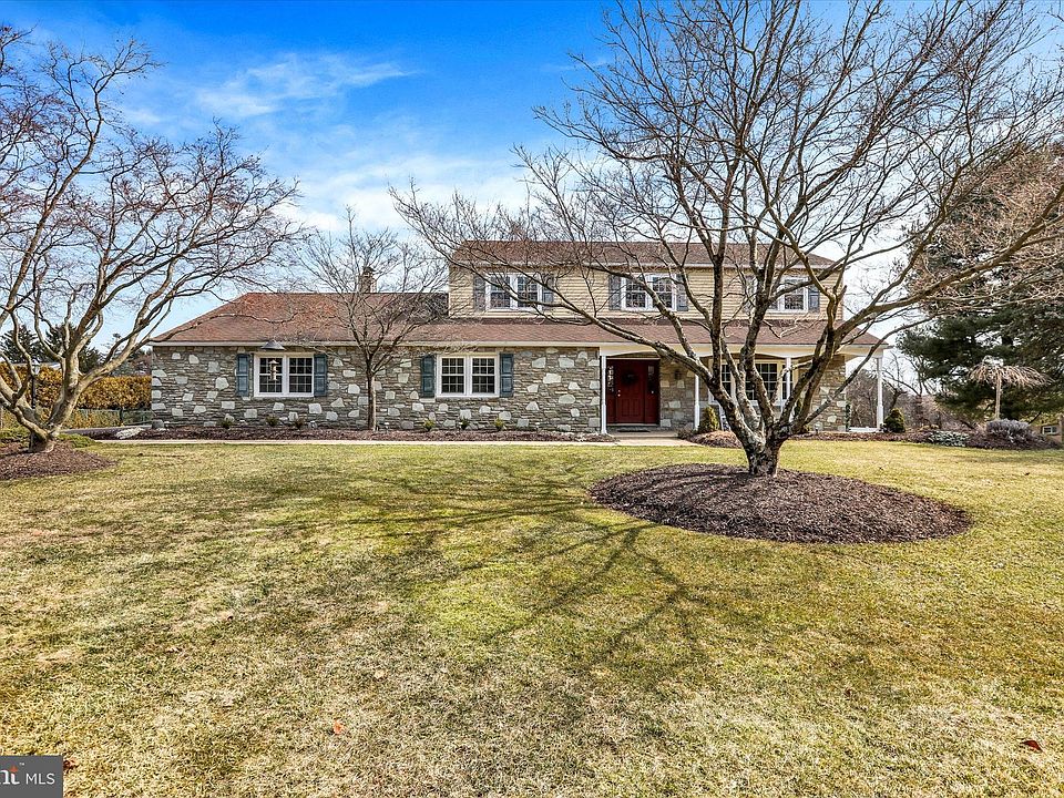 This is the one you have been waiting for...welcome to 32 Summit Circle, a gorgeous, meticulously maintained colonial located on a quiet cul-de-sac in Green Valley and the award-winning Council Rock School district. Move right in to this five bedroom, 3.5 bath home featuring a spacious FIRST FLOOR BEDROOM with ensuite full bath and walk-in closet. This bedroom would be perfect for a primary bedroom suite, in-law suite, in-home office, playroom, exercise studio...opportunities abound! Begin with lovely curb appeal and a great front porch that lead you into a foyer with gleaming hardwood floors that flow throughout both levels of the home. Note the light, neutral color palette that will compliment all of your home decor. The formal living room offers ample room for large gatherings with a cozy feel. The adjacent formal dining room will accommodate a large dining room table and provide the perfect space to make happy memories with family and friends. The stunning remodeled kitchen boasts cream painted cabinets with soft close drawers, granite counters, tile backsplash with under-cabinet lighting, stainless appliances including a double oven range and striking custom built-in hutch. The first floor bedroom suite opens to the kitchen/family room area. The kitchen and breakfast room also open through a sliding glass door to a large deck and covered porch for seamless indoor/outdoor entertaining. There's no better place to curl up with a book or a good movie than the nearby family room with cozy propane-fueled fireplace. A convenient laundry room with access to the covered porch, garage and powder room completes the lower level. Follow hardwood stairs to the second floor which offers four additional bedrooms and two full baths. The primary bedroom includes a great walk-in closet with built-in organizers and remodeled ensuite bath with single vanity and custom tile shower stall with custom rolling glass door. Three other large bedrooms share a full hall bath with single sink vanity and tub/shower. Looking for extra storage or potential for a future finished recreation area? The full unfinished basement offers oodles of additional space. Enjoy fabulous time playing in the level back yard and roasting marshmallows around the built-in fire pit. A shed offers even more available storage. Updates: new triple pane windows (2006/2007), front door and sliding glass door (2006), new A/C (2022), new hardwood flooring (2007-2015), custom kitchen remodel (2013), custom fireplace (2013), Timbertech composite deck (2009), composite fence (2018), fenced garden with raised beds (2020), powder room remodel (2019), 2nd floor primary bath remodel (2019), stone fire pit - wood burning (2019). Other notable features: electric sub panel for portable generator (generator not included), ceiling fans, attic fan, basement french drains and Bilco door, garage attic with pull-down stairs, epoxy garage floor, custom millwork and lighting. The list goes on and on.... move right in and make this your dream home for life!