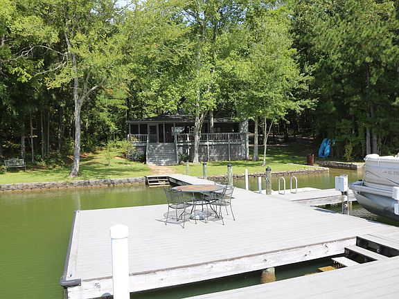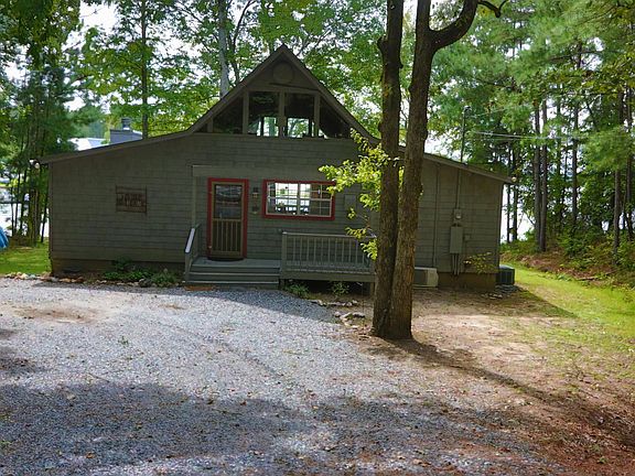 This Lake Martin home sits on a large, flat lot on Parker Creek with 161 feet of waterfront with great lake views. The cabin exudes lake charm with its cedar beams and vaulted tongue & groove pine ceilings within its great room. The great room and kitchen are open concept and offer beautiful views of the lake. The house has 2 bedrooms, each with their own full baths, as well as a sleeping loft upstairs. The outdoor living areas in this home are one of a kind. You'll find an expansive wrap around covered lakeside porch complete with a stone fireplace that has a mounted TV. Also, the house has an inviting screened porch that is great for lakeside dining. Additionally, this property is sold with 2 lots and includes a nice dock with a boat lift.