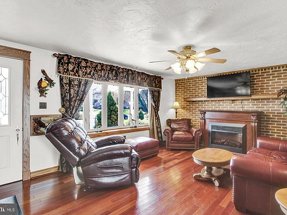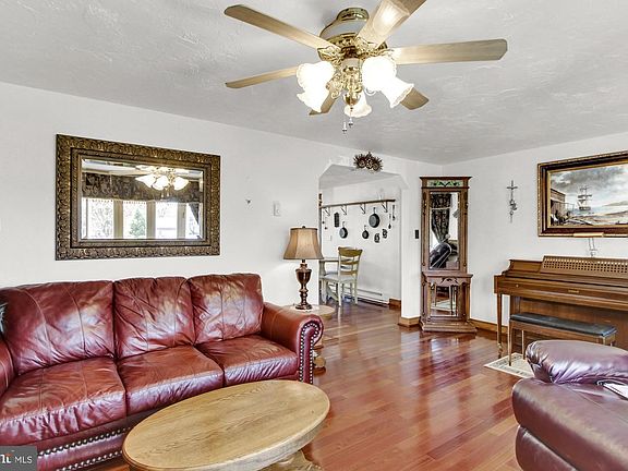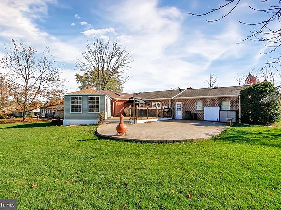 Absolutely lovely 1588 sqft, 3 Bedroom, 2.5 Bath, rancher with over-sized 2-car garage and partially finished basement (featuring waterproof laminate floor, woodstove, bar and half bath), on .51 acre lot backing up to farmland. Kitchen features stainless steel appliances, large island, granite counters. Living room has hardwood floors and brick accent wall. Covered front porch, rear deck and patio, arbor for grill, detached cabana/gazebo room, and large shed with garage door. Public water/Public sewer. Newer windows. Architectural shingle roof installed 2008. Walk-up attic.