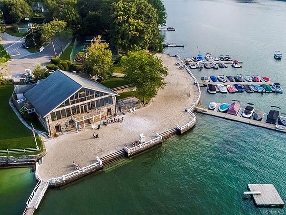 Welcome to Candlewood Lake & vacation living at sought after Candlewood Isle! Enjoy the Isle's amenities; security/guard house, tennis, bocce, basketball, playground, clubhouse, sandy beach, marina, summer youth camp & year-round social activities, this cottage style home is perfect for summer or year round vacation living. Enjoy all-season views of Candlewood Lake with west exposure sunsets, whether you're enjoying a warm fire in the living room with wood stove and stone fireplace, enjoying the view from the main level bedroom with expansive lake views, having dinner in the dining room or curled up with a book or enjoying a glass of wine on the deck. Features include living room with stone fireplace, soaring ceiling & wood floor and beams. The finished lower level is perfect for rec room, in-home office, exercise and easily accommodates additional guests. Upper level features 2 bedrooms with expansive views and an open loft area. Existing deck ready to add a pool or fire pit, utility shed, 2 separate parking lots with plenty of space to accommodate up to 6 cars and golf carts alike! Direct west exposure sunsets will warm your heart all year long from several outdoor seating areas adorned with perennials including 12 fruit trees and a lovely yard, perfect for outdoor entertaining. Close to center of town for shopping, minutes from MetroNorth trains an easy NYC commute and low taxes! New Fairfield and Candlewood Lake are NY's Best Kept Secret. Part of Candlewood Isle Tax District