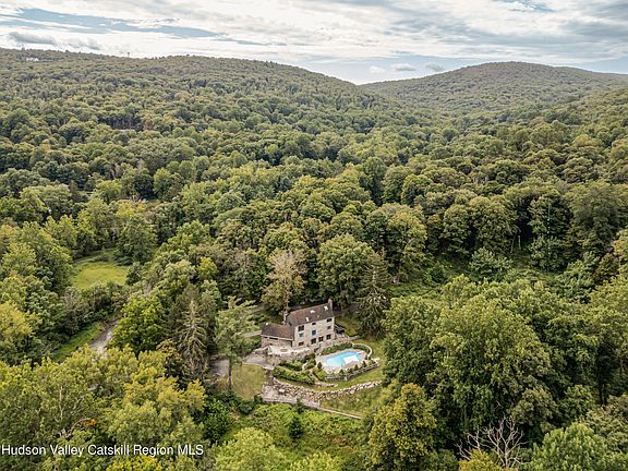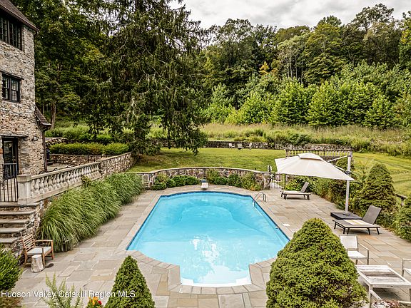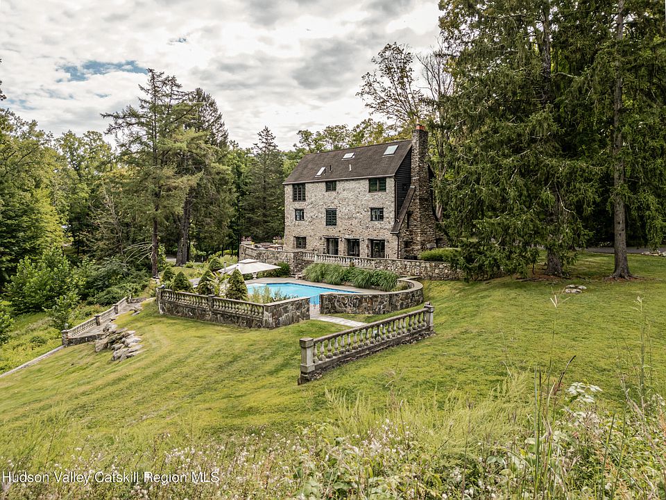 Rooted in legacy, Embury Stone House is a 1930 historic retreat set on 12 private acres. With 5 bedrooms, 3.5 baths, 4,164 square feet of turnkey living space, and a heated pool, the property pairs comfort with pedigree. Designed by renowned architect Aymar Embury II, the stone landmark was built as part of former Secretary of the Treasury Henry Morgenthau Jr.'s Fishkill Farms estate, and became a favored hunting retreat for President Franklin Delano Roosevelt. Hewn from stone quarried directly from the hillside, the home remains a masterwork of craft, with gables, soaring chimneys, and arched doorways that capture its storied past.