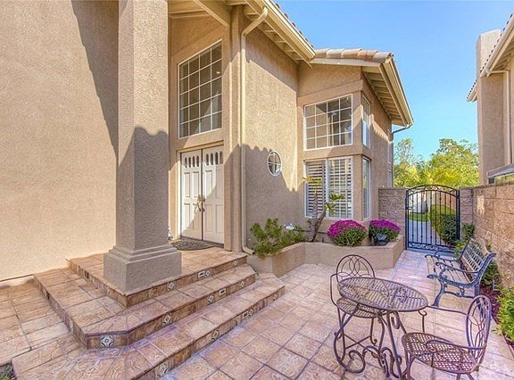 This incredible model home is located on a quiet cul-de-sac street in the marvelous hillside village of Foothill Ranch.With 4 impressive bedrooms, 2.5 baths & approximately 2115 square feet,this home boasts exquisite interior architecture,gorgeous light-filled rooms & designer appointments. Entrance offers a quaint,Spanish tiled,outdoor courtyard which is perfect for your morning cup of coffee.The formal living & dining room w/high volume ceilings,gorgeous travertine flooring accented w/inlaid design,travertine baseboards,plantation shutters throughout & loads of natural infused light.The chef in your family will delight in the remodeled kitchen,which boasts handsome dark wood cabinetry,top-of-the-line stainless steel appliances including sink, faucet,double oven,granite counter tops,tumbled marble backsplash plus a sunny breakfast nook overlooking the backyard.The kitchen opens to the cozy family room featuring a custom granite fireplace & unique, arched, cut-out wall.Large master suite has high ceilings,neutral carpet & paint,plantation shutters & opens to the remodeled master bath with granite counters,custom drawers & separate, glass-enclosed shower & soaking tub.All bathrooms have been completed remodeled with granite counter tops,travertine flooring & upgraded cabinets. Private backyard has large patio area for entertaining & nice grassy area.Award-Winning Blue Ribbon Foothill Ranch Elementary School, Community Library, and Park are close walking distance.
