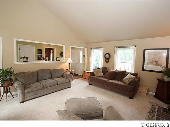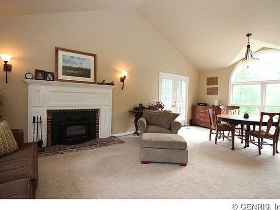 Beautiful Cape/Ranch style home on 1.51 acres in Mendon. Features include great room with vaulted ceiling, wood burning fireplace and French doors to deck. Eat in kitchen with stainless steel appliances, oversized windows overlooking back yard with mature trees and stream. Master suite has master bath, oversized soaker tub, ceramic tile tub surround, his and her closets and French doors to patio. Relax or entertain on the spacious deck or lower level patio surrounding the beautiful built in pool.