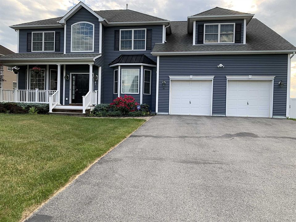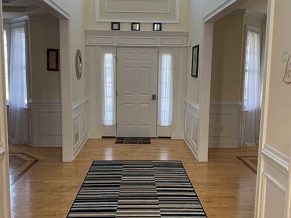 Stunning Princeton Grand Colonial sits on a cul-de-sac located in the Stratford Farms subdivision. The two=story foyer has openings to the formal living room and the formal dining room with tray ceilings and bay windows. It leads into the cozy two story family room with a wood burning fireplace. The home has oak floors with inlaid mahogany 9' ceilings and gorgeous trim throughout. The kitchen has granite counters and a center island with stainless appliances. The rear entry staircase has beautiful oak spindles and leads to a beautiful walkway between the four bedrooms which overlooks the family room and the front entrance. The master bedroom has a separate sitting area which is used as an office, a luxurious master bath with a jacuzzi tub, two sinks, a stall shower and a private toilet area. Three additional bedrooms and a hall bathroom make up the second floor. An optional guest bedroom and full bath are on the main level. The over-sized deck and fenced in yard are perfect for outside entertaining and the natural gas connection is ready for cooking and BBQs. The deck overlooks the (18x36) in ground pool and is a great place to sit and watch the sunset. The walk-out basement is ready to be completed. Community sewer charge is $333.75.