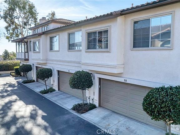 Welcome to this beautifully updated townhome, located in Melinda Heights area of Rancho Santa Margarita. This light-filled corner location with views of the surrounding hills and trees feels like a single-family residence. As you approach the home, you’re greeted by a tranquil front courtyard featuring steppingstones that lead to a peaceful sitting area—perfect for enjoying a quiet moment. The back patio with space to garden overlooks lush greenery, making it an ideal spot for morning coffee, BBQs, or entertaining guests. Upon entering you are greeted with two-story ceilings and walls of windows that bring an abundance of natural light. The interior has been thoughtfully updated with new "white oak" luxury vinyl plank (LVP) flooring throughout, new quartz countertops and fresh interior paint. The kitchen features a gas range, a convenient counter height breakfast bar, recessed LED lighting, new kitchen faucet and pantry for ample storage. The spacious dining area accommodates all your guests and looks out at the front courtyard. The main level also offers a full bedroom and full bath with new white shaker vanity and quartz countertop and is ideal for guests or multi-generational living. The picturesque stairway, with its "white oak" LVP and crisp white risers, leads to the upper level with two generous primary suites, both offering ample closet space and their own bathrooms. One suite features a large walk-in closet, while the other offers dual vanities and two walls of closet space. Additional thoughtful touches throughout the home include newly installed 6" baseboards, shutters, new bath hardware and faucets, new ceiling fan, smart thermostat, and retractable screen door for a breezy, fresh atmosphere. Community amenities include pool, spa, SAMLARC Beach club, tennis, parks, splash park, pickleball, miles of walking and biking trails and events including 4th of July spectacular. Walking distance to the Blue Ribbon Melinda Heights Elementary, Altisima Park and pool. Conveniently located towards the end of a quiet cul-de-sac, the home includes a direct-access two-car garage, with plenty of guest parking nearby. The HOA recently re-roofed the home, adding to its move-in readiness. This peaceful and private location offers the perfect balance of comfort and convenience, making this property feel like your very own.