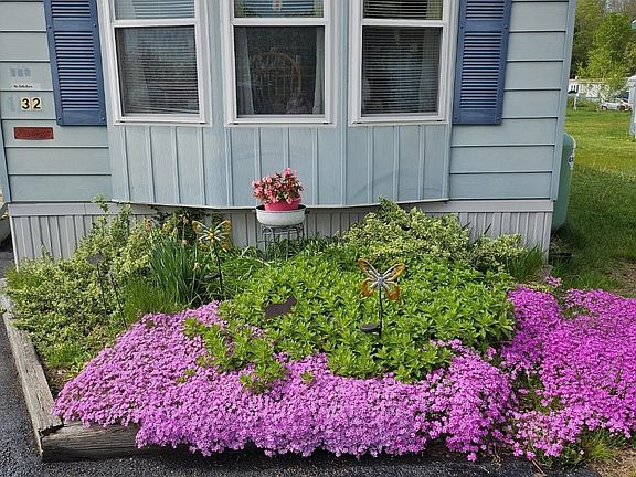 Welcome to 32 Trade Wind Lane located in a nice 55+ cooperative community. This 1985 mobile home features a nice size kitchen located in the front of the home with 3 large windows letting lots of sun in! Plenty of cabinet space including a floor to ceiling pantry closet with shelving and drawers. The kitchen is open to the living room and separated by a large peninsula bar. There are 2 good size bedrooms one of which has direct access to the remodeled bathroom with a large walk-in shower and lots of storage space. During the remodel, new pipes, heat tape, and insulation were installed below the bathroom, under the home. Most of the windows have been replaced and there are 2 mini-splits in the home and a newer electric hot water heater. The exterior has vinyl siding, a metal roof, a large storage shed, an enclosed porch and also many beautiful perennials. This well maintained home is ready for a new owner! The Coop is currently in the process of hooking into city water. Also conveniently located in the park are dumpsters for your trash and recycling. Just 5 minutes from Walmart and The Ridge Marketplace. Low monthly park fee only $350!