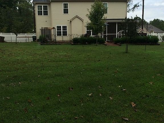 Fantastic home, must see! 4 bed/3 full baths.Huge upstairs master with sitting room,trey ceilings,seperate from other bedrooms and closet space to accomodate for any wardrobe,upstairs laundry,hardwoods throughout the entire home,carpet in sp beds, 9" smooth ceilings,2 story foyer,granite countertops, tons of cabinite storage,walk in pantry,ceramic backsplash,gaslogs,vinal/stone exterior,concrete patio,screened in back porch,professional quality landscaping/fenced yar/storage shed, 2 car garage/2644 sq ft!