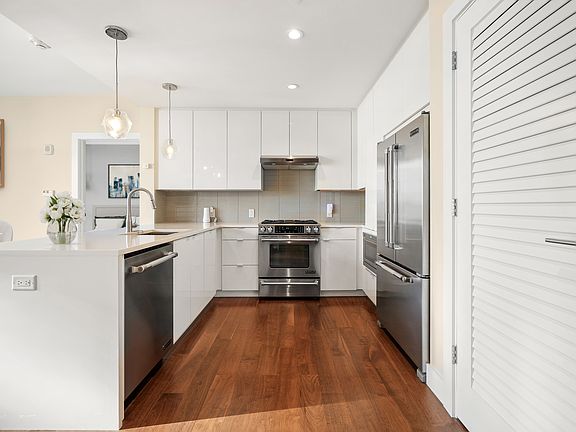 Experience elevated Boston living in the South End at Sepia. This 4th-floor condo is filled with natural light & expansive views. A chef's dream kitchen boasts abundant storage, an oversized island & premium steel appliances, including a gas range. The generous living/dining area with space for a large dining table & abundant seating, flows seamlessly to a private balcony, perfect for grand entertaining or comfortable living. The living space is complemented by a half-bath & laundry closet with washer/dryer, plus a coat closet for added storage. The bedroom features a large closet with built in storage. The elegant ensuite bath has a glass shower & ample storage. Sepia, a boutique building, offers a newly renovated lobby & hallways, a well-equipped gym, a new community room & stunning roof deck with grilles & seating. Positioned in the heart of the South End's Ink Block, luxury meets convenience, with Whole Foods, fine dining & city life/services just moments away. minimum length of lease is one year