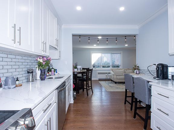 Beautifully renovated 1st floor Pet Friendly 1 Bedroom Condo walking distance to NYC Transportation. Features include Eat in Kitchen with Granite & Stainless Appliances, Oversized Living Room, Large Bedroom with 3 closets, Full Bathroom, Washer/Dryer in Unit, Crown Moldings, Hardwood Floors, Storage, 2 Car parking, Pool & more....... Walking distance to Park. Close to All major highways.