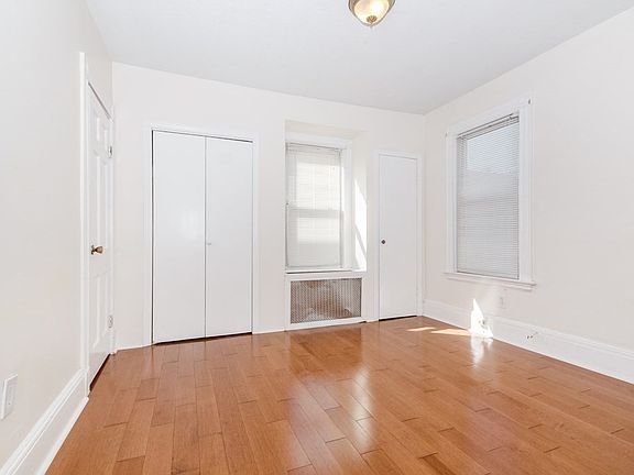 This first-floor apartment features hardwood flooring, an updated eat-in kitchen, 3 bedrooms, a spacious living room, a bonus room that some have used as a bedroom, a wonderful backyard patio, free shared laundry and basement storage. Convenient Magoun Square location with great restaurants at the end of the street, along with the stop for the #80 bus which travels to Lechmere Station in 15 min. The driveway that fits two cars in tandem is available for an additional $100/mo.