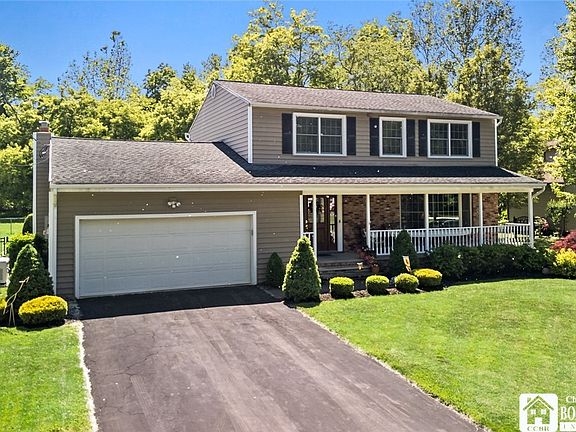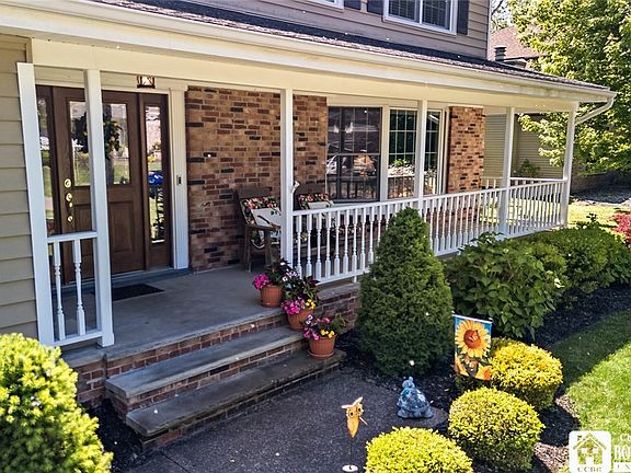 4BR/2.5 Bath home in excellent condition inside and out! Formal living & dining room, gathering room off modern, kitchen (granite counters) w sliding glass door to back 14' X 20' Trex deck and 16' X 32' in-ground pool (new heater 2009, liner 2018, sand filter 2009, safety cover 2023), 18 kw Generac Generator 2023, Heat & Glo Gas fireplace insert 2022, Lennox furnace & central AC w Nest thermostat 2021, Pella windows throughout 2009, living room bay window 2013, 200 amp electric service w breakers 2021, second floor laundry closet, primary bedroom bathroom updated 2015 include bubble tub & tv, hardwood floors on first floor 2003 & 2018, 8'X14' storage shed which matches house siding 2016, new house vinyl siding 2009, waterproofed basement & glass block basement windows, epoxy garage floor 2019, are some of the many upgrades! Located on a cul-de-sac w lovely, surrounding homes, fenced-in back yard w a magnificent view of a peaceful wooded area! Ring doorbell at front door!
