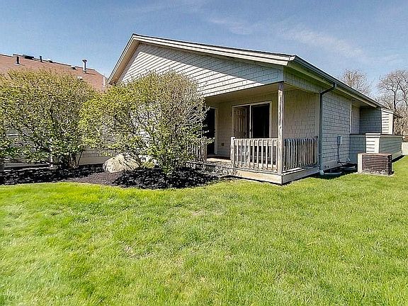 Make this sweet condo your year-round home or pied-a-terre. Open living and dining with vaulted ceilings along with two porches make this space ideal for entertaining or just sitting back, relaxing and taking in the beautiful back yard. The master bedroom has an en suite as well as sun deck. There is also a full, un-finished basement and garage for all of your storage needs. Perfect for anyone just starting out, looking to down size or looking for single-level living with central air!