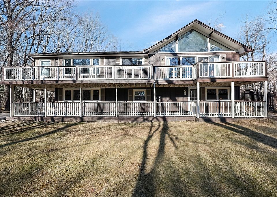 This beautiful ranch home boasts a unique open floor plan in a private neighborhood. Now available at a reduced price with motivated sellers and lower interest rates! The kitchen features granite countertops, abundant storage and a large island. A spacious balcony off the dining room coupled with large windows throughout provides beautiful views of the private yard. The large living room with a centrally located chimney flows into the dining room and kitchen showcasing vaulted ceilings—perfect for hosting large gatherings. The home is set up as a 4-bedroom, with 2 bedrooms on the main floor and 2 below. The Title V inspection has passed for 3 bedrooms. The large fenced-in backyard is ideal for kids and pets. Large back deck with a hot tub offers a perfect retreat for relaxing. Enjoy multiple heating options: hot water baseboard by oil, a wood stove in the lower level and a pellet stove on the main floor. Convenience and tranquility minutes from shopping, dining and entertainment.
