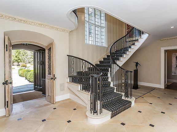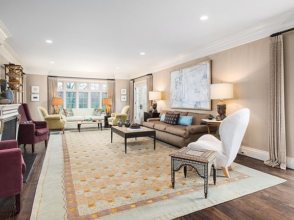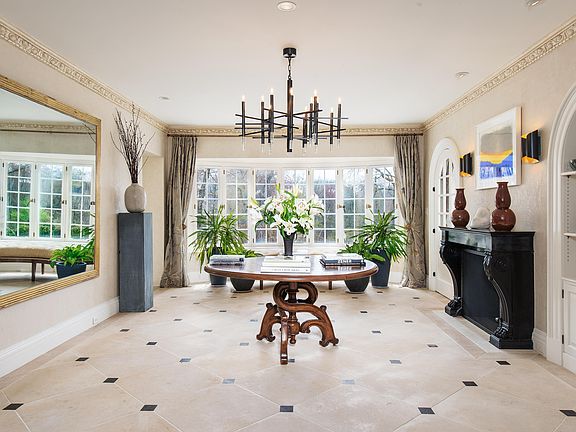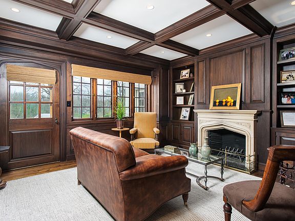 Modernized in 2006 by the celebrated architect Grandberg & Associates sited on a rare, oversized downtown property in desirable Rock Ridge. Faces due south with panoramic views across a tranquil pond, pool, sweeping velvety lawns, and formal gardens including a boxwood parterre at the courtyard entrance. Fresh, innovative design and up-to-the-minute luxury is felt in every room of this wonderful 12,000 square-foot home. A custom crafted front door opens to the front-to-back limestone floor reception hall with fireplace and custom art lighting. Hall with barrel ceiling leads to a stately walnut-panel library and an elegant front to back living room with original fireplace. Another hallway with guest cloak/powder room opens to a vestibule with hand-applied painted wall covering leading to the spacious, contemporary dining room. Gourmet kitchen is a stunning 2014 renovation highlighting a 11' ceiling, 2 honed granite center islands, Waterworks tiled walls, and top quality appointments throughout. The room seamlessly ties in with a breakfast room, wet bar, step-down knotty pine family room with fireplace, homework room, half bath plus mail room and a back staircase connecting with both upper and lower floors. A magnificent clerestory staircase rises to the privately sequestered master suite featuring a double sitting room-study with fireplace, pocket doors separating the bedchamber, 2 marble bathrooms with heated floors, steam showers, Waterworks fixtures, plus extensive His & Her custom dressing rooms. Five-star atmosphere for family & guests in four en suite bedrooms plus third floor game/playroom. Superbly finished walk-out lower level adds a light-filled media room with wet bar, a pool cabana/bath, a dramatic 2-story wine cellar, gym/6th suite with full bath, heated 3-car garage, fitted mudroom. Premier Rock Ridge setting with a phenomenal 4.47-acres guarantee both privacy and elegance in the center of town.