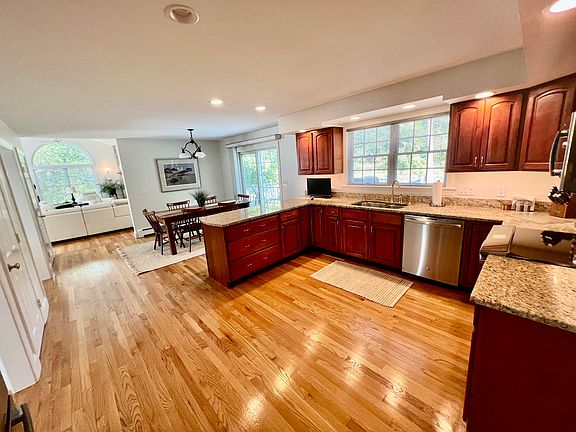 Welcome to your dream home situated on a quiet cul-de-sac in South Portland, offering breathtaking mountain views and picturesque sunsets. This well-built colonial boasts six spacious bedrooms, including a magnificent master ensuite. The interior features gleaming hardwood floors throughout adding elegance and sophistication to every room. Walk into a grand 24 x 24 first floor family room, complete with a striking stone/granite fireplace that sets the perfect ambiance for cozy evenings. The kitchen is adorned with beautiful granite countertops, custom cherry cabinets and features new GE Profile stainless steel appliances. The eat in kitchen offers a sliding glass door that leads to a spacious deck overlooking the large private yard, perfect for outdoor activities and gatherings. Both front and back yards are well landscaped with an irrigation system. The attached two-car garage offers plenty of extra space that includes a bar area and provides private access to the basement, ensuring ease of storage, access for utilities and the additional living space. Additional features include a central vac system, providing ease of cleaning, a Buderus boiler with dual oil tanks for efficient heating, and a GEN Tran hook up for uninterrupted power supply. Don't miss this opportunity to own this exquisite home in a sought-after location!