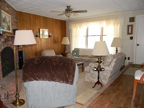 A beautiful landscaped yard surrounds this 3 bedroom 2 bath ranch with attached 2 car garage. Sliding glass doors lead to a patio area with awning and private backyard. The kitchen has a separate dining area with lots of cabinets and counter space. Separate dining area at end of kitchen is open to the living room and family room at the back of the home which owners are now using as a formal dining room. Lots of updates: Central air, steel roof, some new windows, furnace, garage doors, counter tops, flooring, lighting and bathroom vanities. Beautifully maintained. Laundry area has lots of storage and a built in desk.