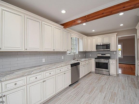 Renovated spacious 4-bedroom colonial offers all new custom kitchen with granite tops and stainless appliances. Living room with fireplace.Refinished wood floors throughout main level, large family room with sliders leading to rear deck overlooking great yard area. Amazing huge master bedroom suite with sky lights, full bath with jetted tub and walk-in closet. Two full updated baths. The entire home has been freshly painted!!