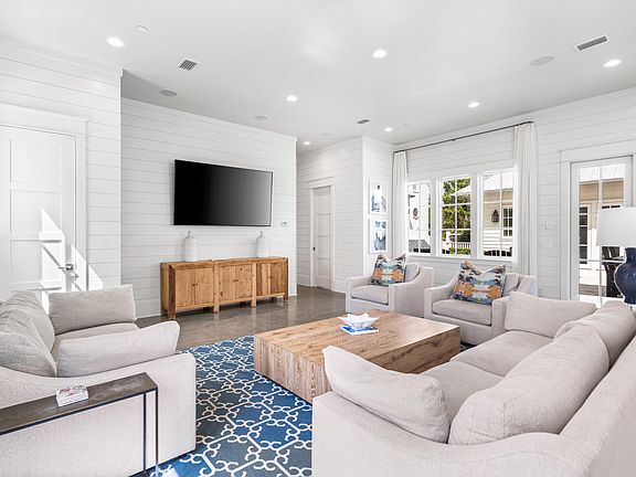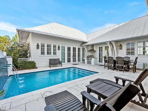 Priced to Sell! Embrace the luxurious Rosemary Beach lifestyle at this exquisite 4 bedroom plus bunk, 5.5 bath residence completed in 2017 giving it the distinction as one of the newer-built homes in this coveted community. Expertly crafted with meticulous attention to detail, this courtyard-style masterpiece seamlessly blends captivating architecture with unparalleled construction. The courtyard oasis features a heated pool and an outdoor lounge area complete with a summer kitchen. Designed for seamless indoor-outdoor living, this enchanting space can be accessed from three points--the great room, the kitchen, and the primary suite--ensuring effortless enjoyment and relaxation. Upon crossing the threshold through the grand mahogany door, you are greeted by a sophisticated ambiance accentuated by polished concrete flooring, which extends gracefully throughout the lower level, shiplap walls, and coffered ceilings. The open-concept design effortlessly transitions from the inviting great room to the elegant dining area and the chef-inspired gourmet kitchen. Adorned with Carrera Marble countertops, bespoke cabinetry, and top-of-the-line Thermador appliances including a double oven with six-burner gas grill and griddle this kitchen is a culinary dream. Adjacent to the kitchen, a spacious laundry room, an additional bedroom with an ensuite bath, and the magnificent primary suite await. Boasting a vaulted ceiling, this serene owner's space exudes opulence, while the master ensuite indulges with double vanities, a separate tub, and a generously sized shower. A custom walk-in closet adds a final touch of luxury. Ascending the staircase, wire-brushed oak flooring guides you to the second level, where two more bedrooms with ensuite baths, a custom-built bunk room with barn doors, and a cozy media area await. Throughout the home, Carrera Marble countertops and exquisite tile work adorn each bathroom, adding to the lavish ambiance. Considered one of America's most romantic towns, Rosemary Beach is an idyllic beach town located along Scenic Highway 30A designed to reunite the concepts of community and connectivity in a quaint town setting. With its brick-lined streets, outstanding on-site amenities and picturesque town center with varied shops and locally owned cafes, locals and guests alike delight in this captivating community. Don't miss your opportunity to own this unparalleled masterpiece a true testament to coastal living at its finest!