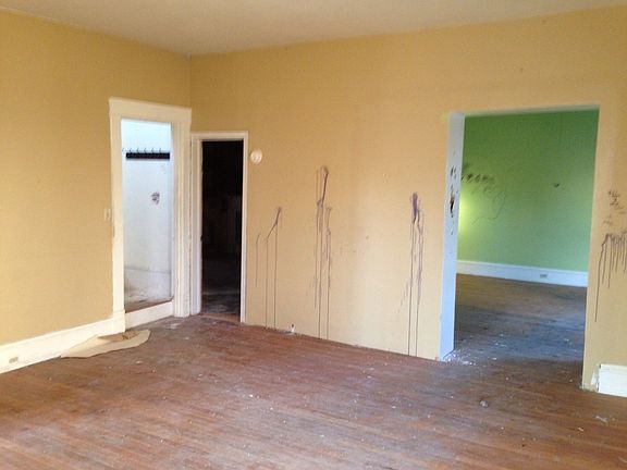 Exterior Features:Large home with vinyl siding and an asphalt roof. Lots of potential for great curb appeal. Large, covered front porch. Windows in tact. Interior Features:Property used to be a duplex and has been converted to a large, single family home. Could be kept as a nice, big house or easily converted back to a cash flowing rental property. Many original hardwood floors that could be refinished. Plaster throughout is damaged and missing in some places and needs to be updated or replaced. Full rehab needed, but there is a lot of character and potential.