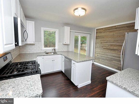 This three bedroom, 2 full bath stunner of a home has been totally renovated from top to bottom. Almost everything is NEW! New siding, new windows, new roof, new doors, new gutters, new central air conditioning and coil, new electrical service, new wood floors throughout the first floor, new carpet on stairs, upper hallway and upper bedrooms, freshly painted interior, new kitchen with stainless steel appliances, subway tile back splash and gorgeous granite counter tops, new eating area design with a sliding glass door that opens to a spacious new wood deck, two new full baths, lots of closet space for storage and a full basement. Bilco doors in the full basement allow easy access to the backyard. The floor plan flows flawlessly with formal living and dining rooms with lots of recessed lighting, a large kitchen and a bedroom on the first floor. Upstairs you will find two bedrooms, a full bathroom and closets lining the entire hallway. There is plenty of driveway parking with easy access to the side entry door and a huge back yard. You can be ready to entertain for the holidays with this absolutely gorgeous, move-in ready home.
