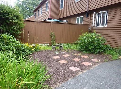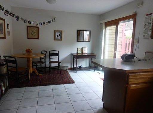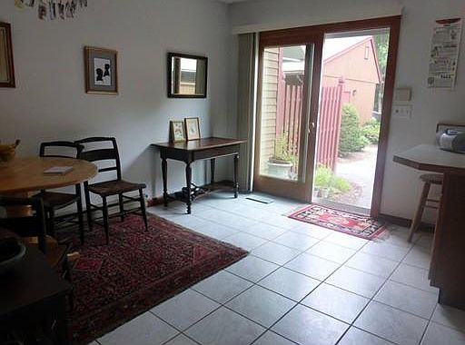 Beautiful Condo within walking distance to downtown. This unit uniquely features a sunroom off the back with privacy and a view of woods. There is also a detached 1 car garage and private patio area to enjoy. The kitchen and dining area feature oak cabinetry, tile floors, counter bar, & slider to patio. The very large LR has a brick fireplace w/glass doors and a large hearth to sit upon. There are built-in book shelves and cabinetry on either side of the FP. Sliders lead out to a teak wood, glass enclosed, tile floored, seasonal sunroom w/beautiful light. 1/2 bath w/pedestal sink & tiled floor complete the 1st floor. The 2nd floor has 2 very large BR's with walk in closets. The master bedroom looks out to the woods with an abundance of windows to bring in the light. The 2nd floor bath has a large soaking tub, solid birch vanity and tile floor. The basement is dry & could be finished. This condo has been well-cared for and should not to be missed!