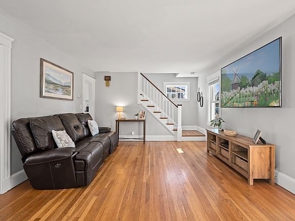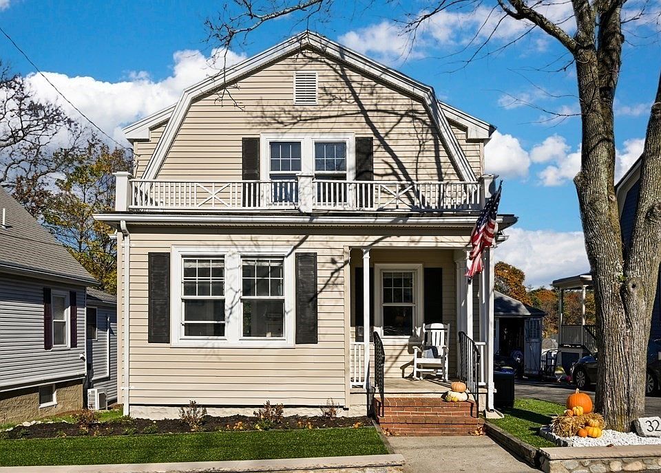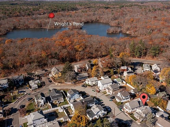 Completely remodeled Dutch Colonial located a 2 minute walk from Wright's Pond and minutes drive to Boston! Main level features loads of natural light and hardwood floors throughout, oversized living room, formal dining room with original built-ins, renovated kitchen with stainless appliance and quartz countertops, laundry room with stackable washer and dryer, half bath with new vanity, and mudroom. Upstairs features three large bedrooms with tons of closet space and a newly redone full bathroom. Lower level has been finished and is a great place for entertaining and could potentially be made as an in-law. Go out back and admire your breathtaking backyard! Complete with a massive treks deck (780sf), vinyl railings with solar lighting, stairs leading you to a seperate well manicured lawn which is lined with brand new vinyl privacy fencing! With a one car garage, brand new artificial turf and an amazing location, this gem is priced to sell and will not last!
