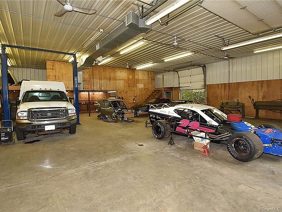 Private, Contemporary located on a 10+ acre parcel, with an over-sized 2,200+ sq ft 'Morton' building - with mezzanine, and numerous garage doors perfect for the 'toy' enthusiast, equipment owner, or storage-challenged individual - in quiet Ellington area! This 4 bedroom home is truly unique! A 2-story, pristine, recently-refinished, hardwood-floor foyer gives way to a large 25' X 15', sunken living room with a centerpiece, floor-to-ceiling, wood-burning stone fireplace, and an open-floor-plan design. Transitioning nicely into a beautiful, hardwood-floor dining room and adjacent, center-island, oak cabinetry, tiled-floor kitchen - with tasteful built-ins - this home also offers 2 large, ceiling-fan-equipped, off-foyer, main-level bedrooms and a tastefully-appointed full bath. An off-kitchen laundry room with 1/2 bath, and a garage-level, mudroom complete the first floor. The second floor contains a bright, natural-light-infused balcony that shares views of both the foyer - with its large circular window - and the sunken living room with its distinctive, stone fireplace. The balcony leads to a Master bedroom suite complete with access to an upper office area, a large walk-in, a small sewing room, and a MASSIVE, tiled master bath - with hot tub and abundant natural light. A private, 4th bedroom resides on the other end of the balcony. Also included is a lrg, private, wrap-around deck - accessible from many of the first floor rooms - a Master bedroom balcony, and private grounds