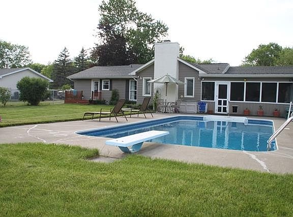 Attractive 3 bed 2 bath ranch set on double lot in established private neighborhood. Home includes many recent updates-kitchen cabinets, windows, and bathrooms remodeled in last three years. Large pantry for kitchen storage. High efficiency furnace and central air. Family room with vent free gas log fireplace leads to three season room over looking in ground pool. Perfect for entertaining! Pool has new liner, filter, solar cover, and safety winter cover. Additional empty double lot behind home will convey with purchase if wanted.