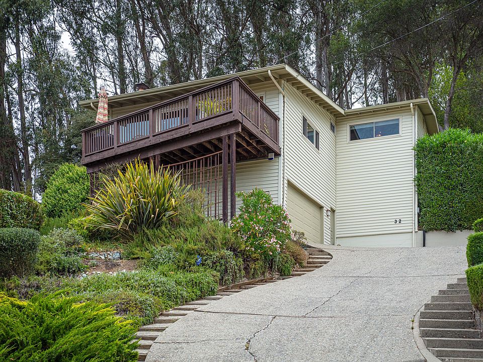 Transparent Price! If you're tired of being outbid, this well-maintained light and bright Mid Century is the home you've been looking for! Perfect to live in now and update later, with refinished hardwood floors and classic wood plank ceiling in the open plan living/dining/kitchen. Built-ins provide lots of storage for office, hobbies, or toys. Watch varied sunsets over downtown Oakland and the Peninsula from the living room, front deck or rear upper patio (including peekaboo views of SF!). Owner's bedroom includes good closet space and an ensuite bathroom. Landscaped yard has two patios and charming flagstone steps from lower to upper areas. Includes two-car attached garage with storage closet. Upgrades include dual-paned windows, roof, furnace, plus AIR CONDITIONING!! Located on a cul-de-sac only .3 miles to Montclair Swim Club, and 1.3 miles to Montclair restaurants, services and Highway 13.